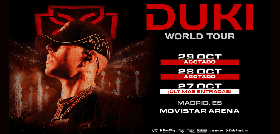 El Concierto de Duki en Movistar Arena Madrid se celebrará los días 27, 28 y 29 de octubre 2025.